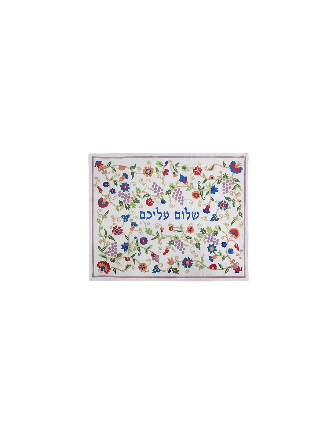 Couvre hallah brodé – “Shalom Aleichem” – raisins multicolores