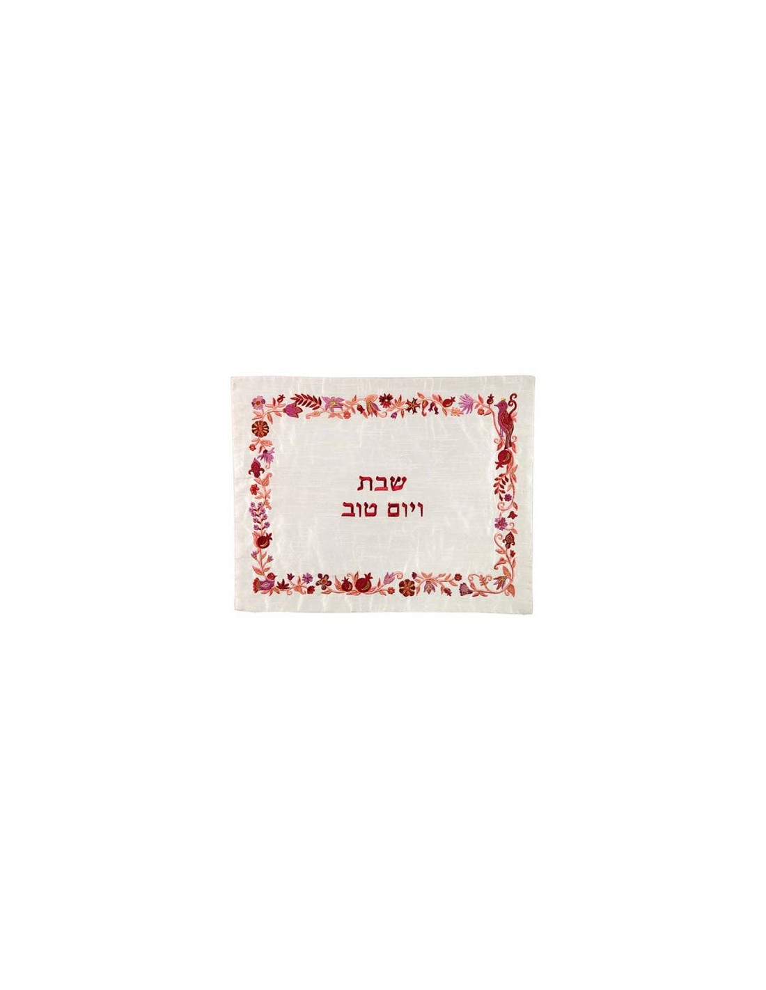 Couvre hallah brodé – motif fleurs bordeau
