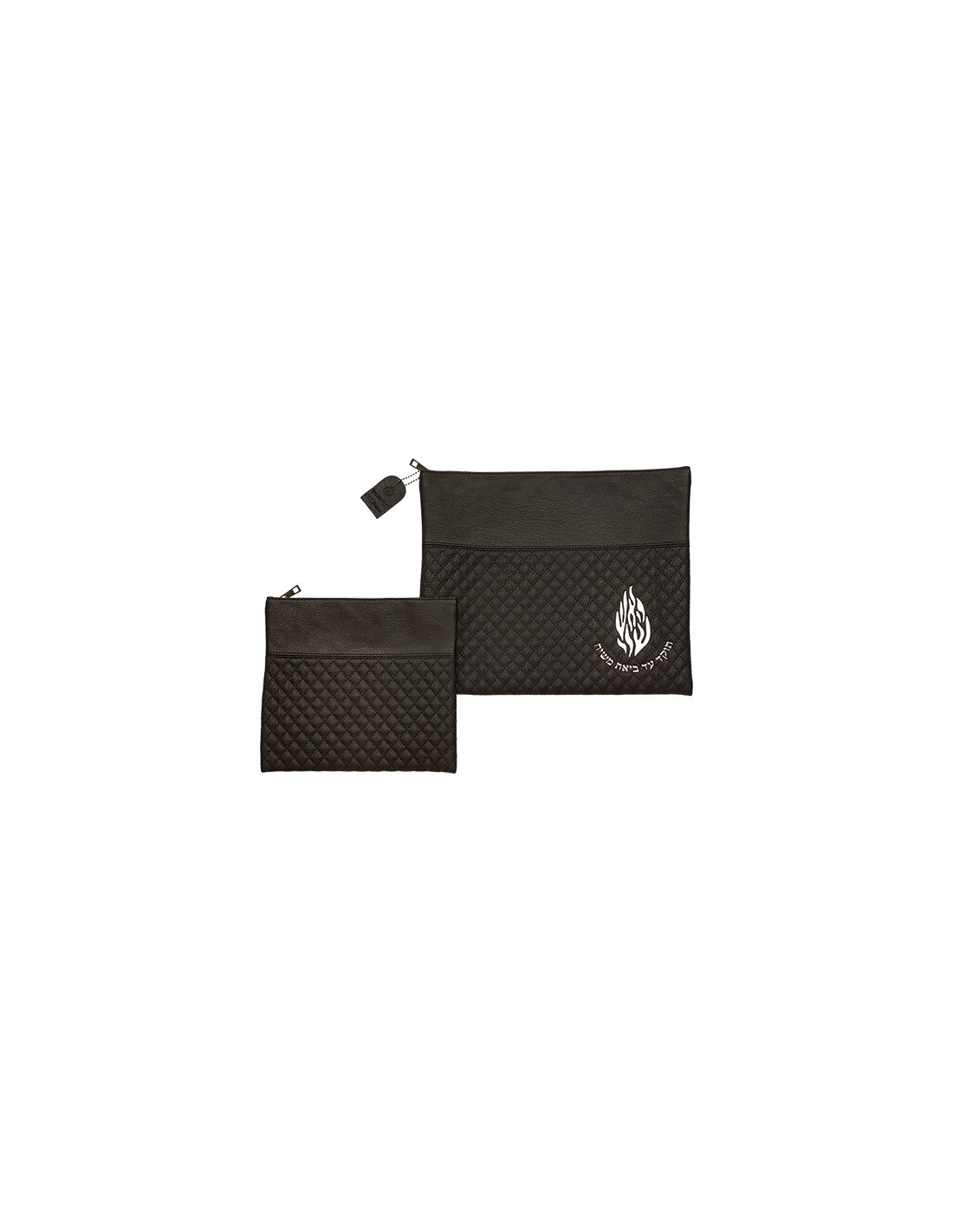 Pochette de Talit et tefillin en similicuir noir avec inscription Eich